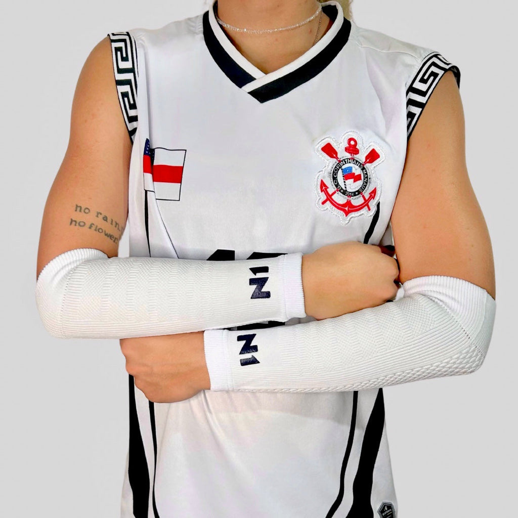 O manguito de vôlei da N1 Sport tem uma compressão gradual do punho para o ombro, para ajudar na circulação sanguínea do braço.