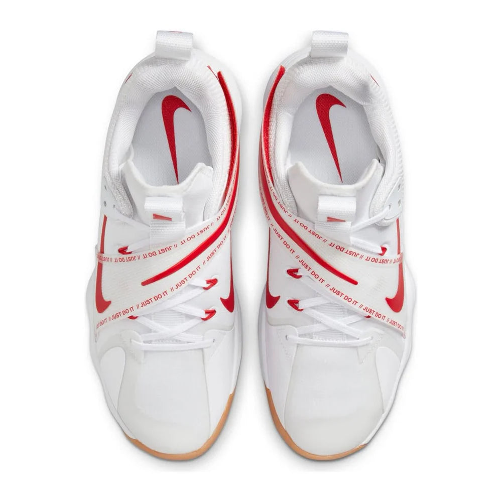 O Nike React HyperSet oferece excelente tração em quadras internas para que você possa atacar em velocidade máxima, parar em um instante, elevar e pousar com confiança. A tira lateral e os cabos Flywire prendem seu pé com segurança, enquanto a espuma Nike React cria um retorno de energia incrível para ajudar a manter a rapidez no seu jogo.